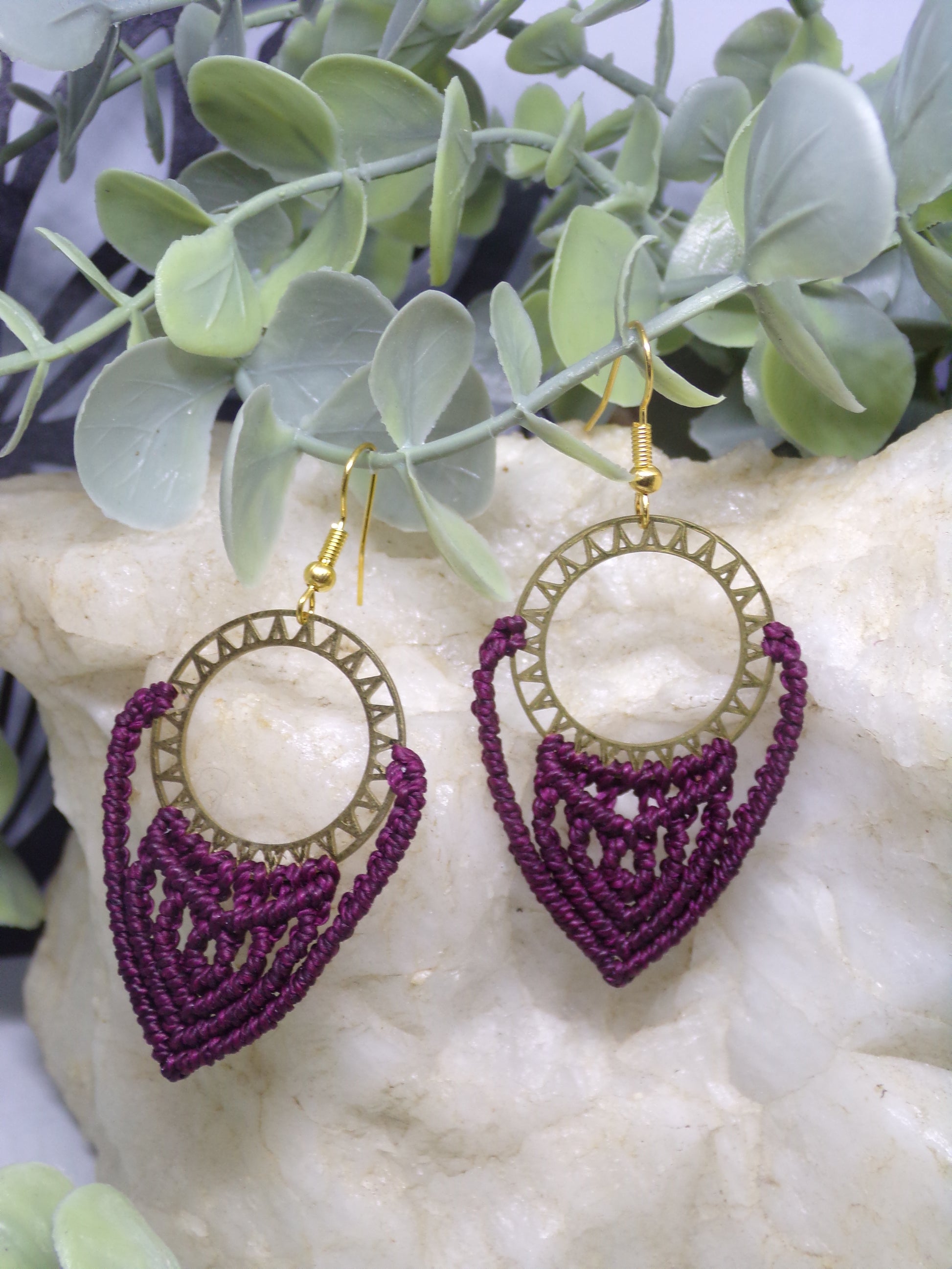Boucles d'oreilles en macramé Soleil pourpre