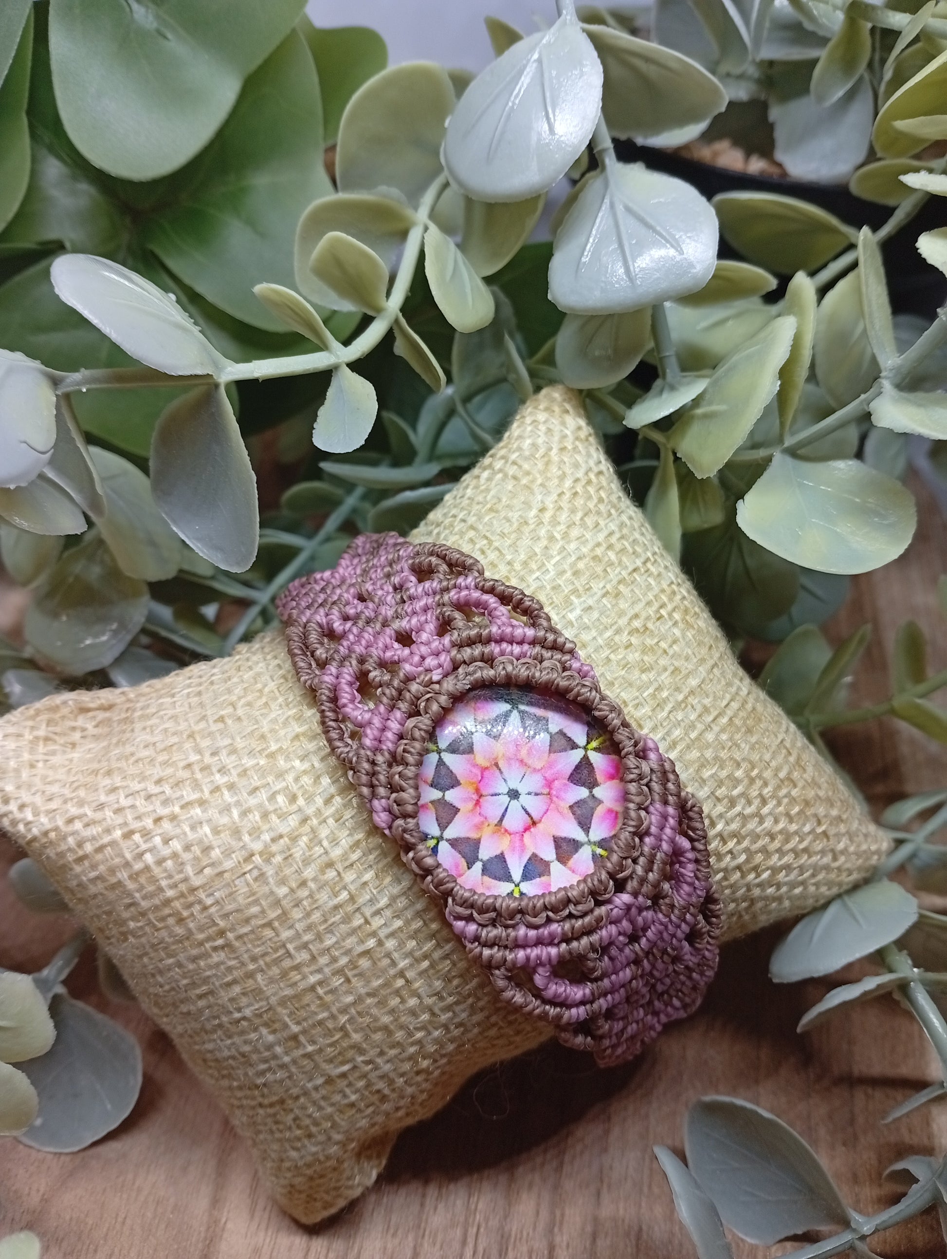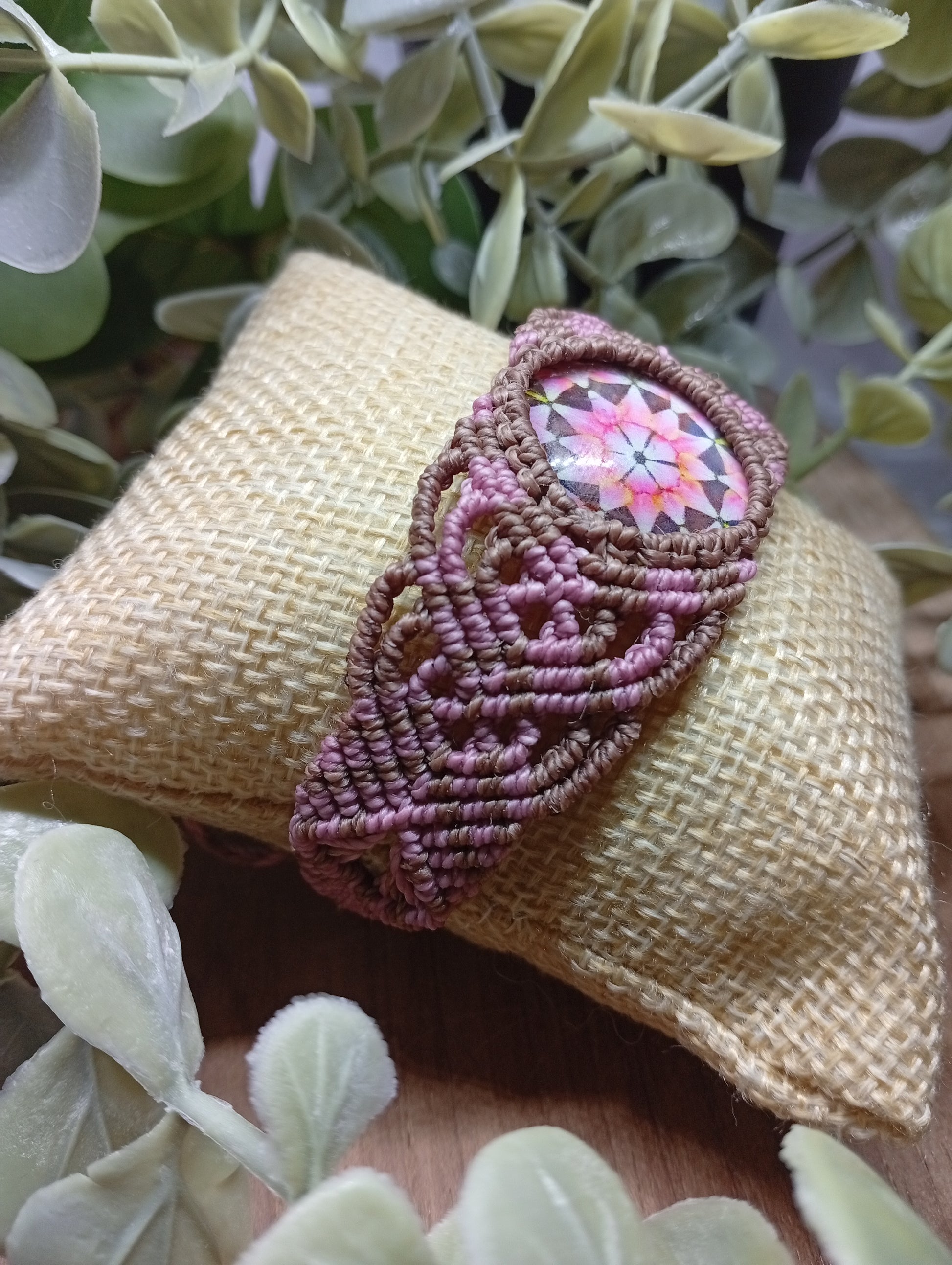 🌟 Bracelet macramé & cabochon en verre – L’alliance du fil et de la lumière Ce bracelet mêle la douceur du macramé à l’éclat d’un cabochon en verre, comme une goutte de lumière posée sur votre poignet. Tissé à la main avec soin, il incarne l’élégance naturelle et le charme bohème. À porter seul ou en accumulation, il attire les regards sans jamais en faire trop.